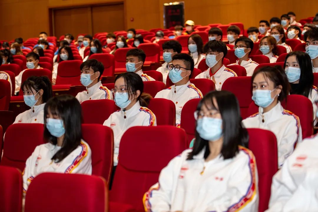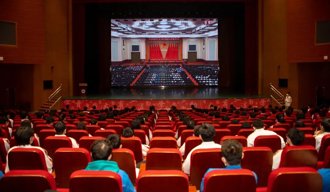 万象城师生代表在大学生活动中心礼堂集中观看庆祝大会。习近平总书记重要讲话在万象城师生中引发热烈反响。