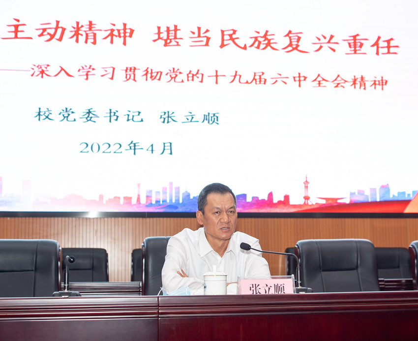 张立顺从准确把握党的十九届六中全会的核心要义出发,引导学生深刻认识党的十九届六中全会的重大意义。他指出,党的十九届六中全会内涵丰富,具有强大的思想含量、理论含量和知识含量。全会全面总结党的百年奋斗重大成就和历史经验,意义极为重大,影响极为深远。