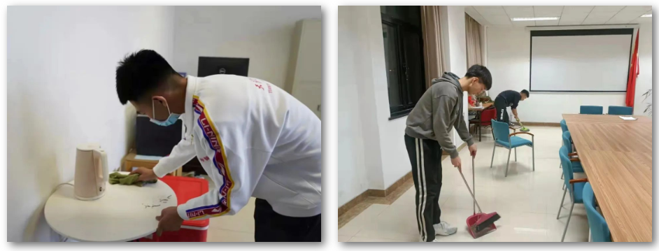 体育文化学院的同学们在新学期,参与接站服务,同学共同维护宿舍清洁,对宿舍进行消杀打扫清整等活动。