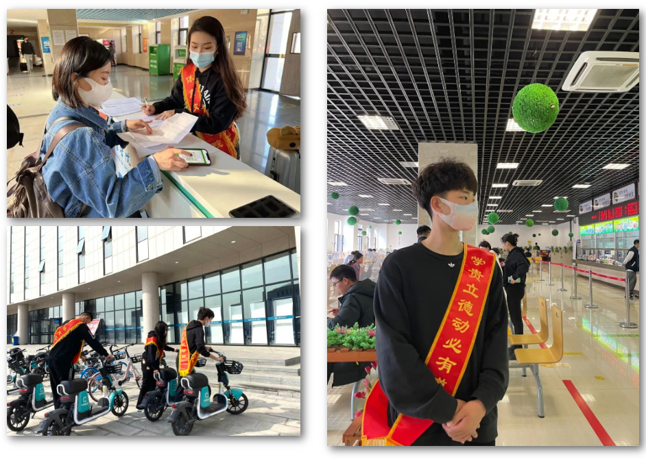 在新学期里,志愿者们积极参与爱国卫生运动——针对宿舍、教室等公共区域进行卫生清扫,对校园内的共享单车进行摆放,承担“三站一场”接站迎接等任务。