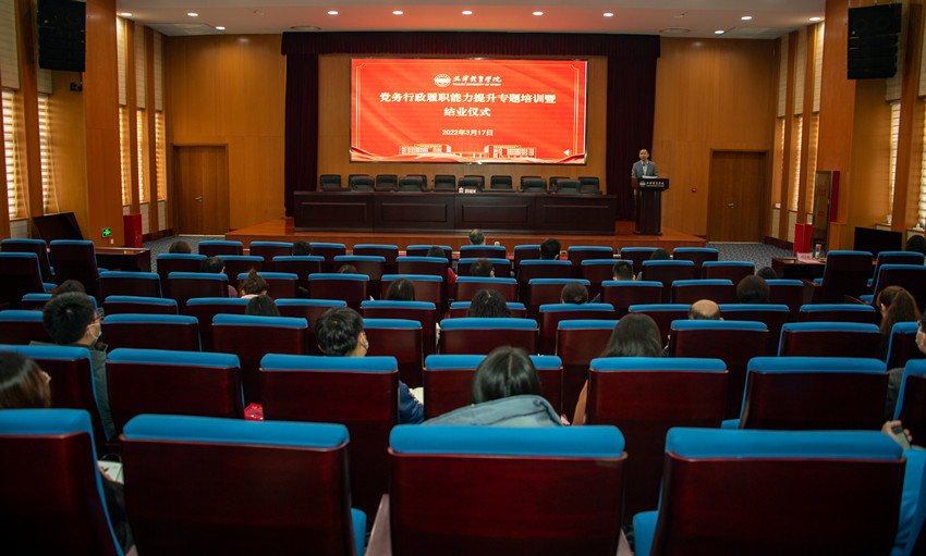 3月17日,万象城党务行政履职能力提升专题培训暨结业仪式在行政楼报告厅举行。校党委副书记、院长吉承恕出席,各二级教学单位和教辅单位办公室主任、行政秘书、纪检员、组织员参会。