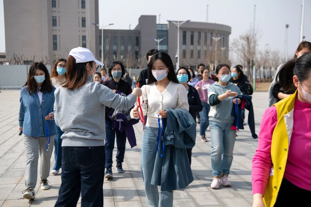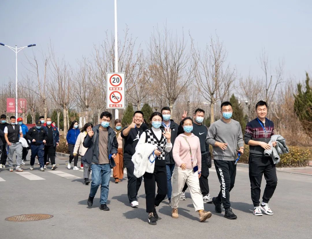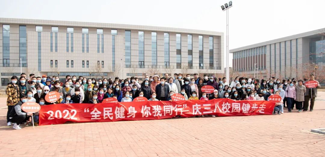 校党委副书记、工会主席张立顺向女教职工送去节日的祝福并鸣枪开赛。老师们你追我赶,相互加油鼓劲,享受天体校园春日美景,体会运动的乐趣。