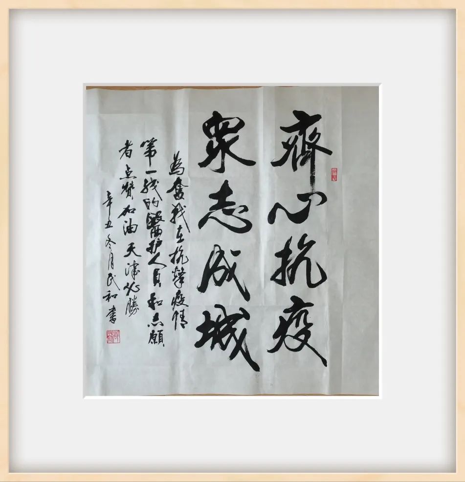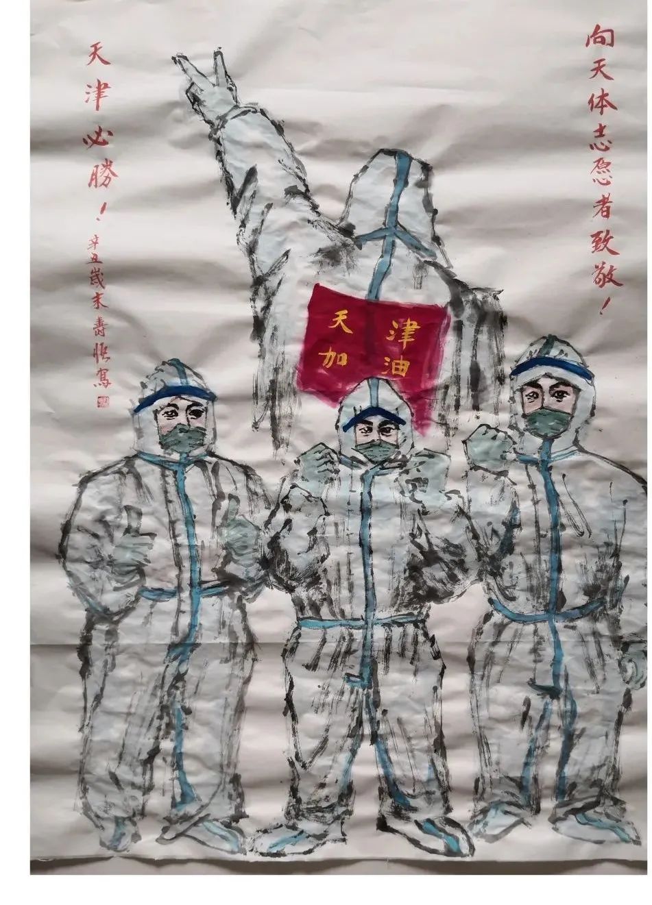 离退休同志在做好自身防护的同时,积极创作书画、诗词作品,表达对抗疫前线工作者无私奉献的敬意,对天津人民团结互助乐观精神的赞扬。