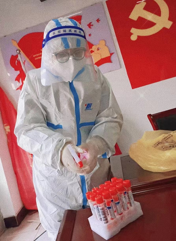 张小刚,运动训练方法与康复教研室教师,在南开区华苑街道碧华里开展居民信息统计、核酸筛查现场疏导、发放核酸检测用具等工作。