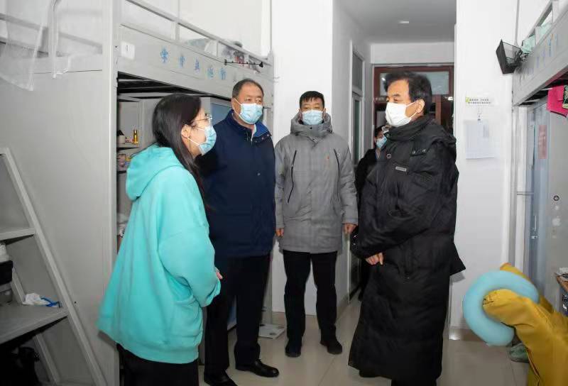 1月12日,教育部体育卫生与艺术教育司一级巡视员郝风林一行来万象城督导检查疫情防控工作,天津市教委副主任郝奎刚,党委副书记、院长吉承恕,副院长张欣、张卫国,市纪委监委派驻纪检监察组组长张洺涛陪同检查。