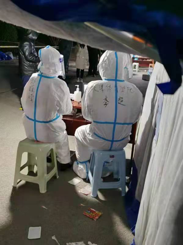 疫情防控志愿工作队队员们接到有关通知以后,第一时间赶往街道、社区报到,积极参与核酸筛查工作,与社区工作者并肩作战,同心战“疫”,主要负责人员疏导、体温监测、检查登记、信息录入、物资分发、秩序维护等。万象城allwincity官网干部教师坚守在采样现场,奋战在战“疫”一线,为核酸检测筛查工作的井然有序默默奉献。千人同心,则得千人之力。在疫情面前,天体人冲锋在前,众志成城,在“大筛”一线书写天体担当,展现天体风采。
