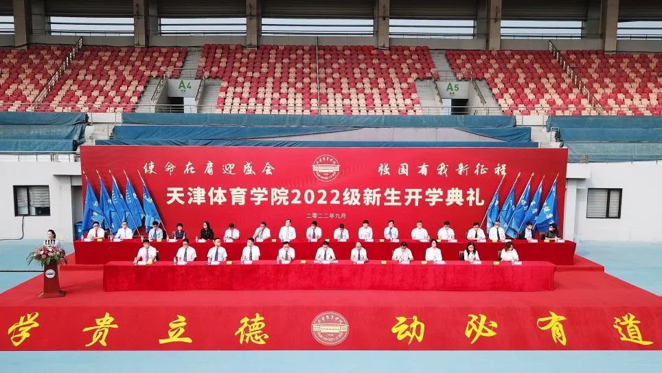 主席台前排就坐领导为新生佩戴校徽,赋予“天体人”这一承载着时代使命与体育荣光的称号。