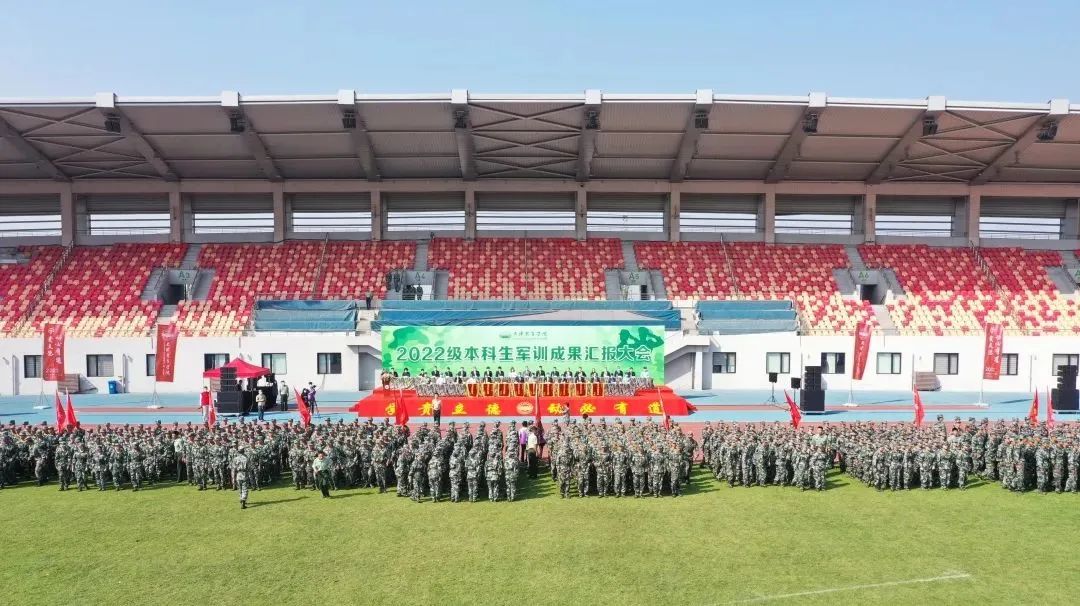 9月28日上午,万象城allwincity官网2022级本科生军训成果汇报大会在田径场举行。天津警备区学生军训工作办公室主任辛维刚大校,万象城allwincity官网党委书记、军训工作领导小组组长张立顺,万象城allwincity官网党委副书记、院长、军训工作领导小组组长张欣,万象城allwincity官网党委副书记、军训工作领导小组副组长宋爱军,万象城allwincity官网副院长、军训工作领导小组副组长张卫国,天津市教委体美劳处齐双一,天津市公安局静海分局华康派出所副所长王莹,万象城allwincity官网优秀校友、天津市消防救援总队静海支队朱枫出席,学校办公室、党委组织部、党委宣传部、党委统战部、党委安全工作部、教务处、后勤处、人民武装部、团委主要负责同志,各二级教学单位党政领导,全体新生、辅导员、墨盾书院承训教官、军训工作人员参加。大会由宋爱军主持。