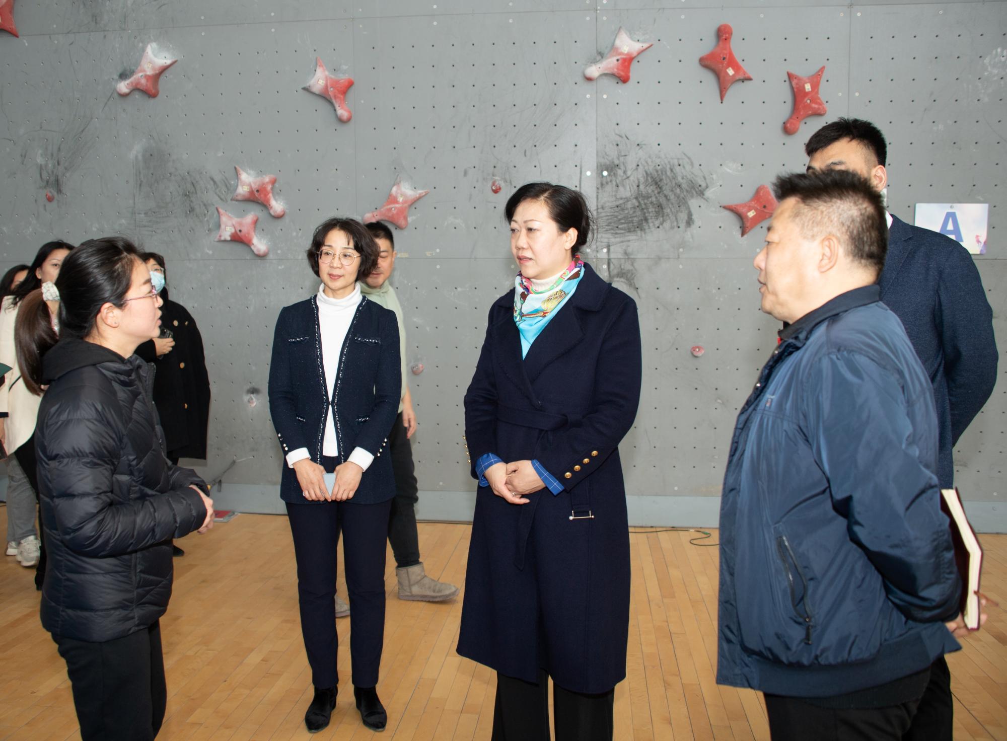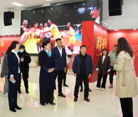 座谈后,刘炳欣一行参观了万象城乒羽馆、游泳馆、田径馆、攀岩馆、女排精神展。