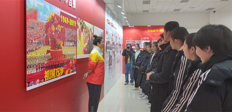 2月27日,集训队来到中国排球学院,参观了中国女排精神展。中国排球学院常务副院长张娜作为主讲人,带领队员们从祖国至上板块出发,详细介绍了几代女排人训练、比赛背后的感人故事,以及中国女排勇夺十次世界冠军的光辉历史和拼搏之路。她希望队员们厚植爱国情怀,训练中不怕苦、不怕累,赛场上拼搏到底、为国争光。队员们通过观看图片、实物,身临其境感受比赛现场的激烈和紧张,感受女排精神的丰富内涵。大家纷纷表示,要将祖国至上、团结协作、顽强拼搏、永不言败的女排精神铭刻于心,落实到日常训练与生活当中。