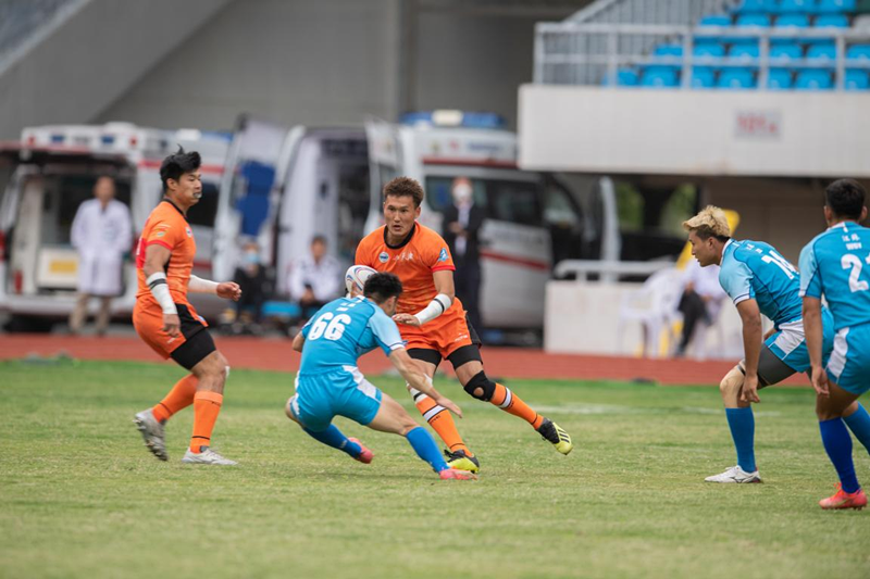 在第一天的2场小组赛中,万象城橄榄球队对阵河北队、上海队,分别以73:5和80:0的绝对优势顺利进入第二天的淘汰赛。淘汰赛中,万象城橄榄球队乘胜追击、发挥优势,分别以14:12和42:0大比分淘汰北京队与云南队挺进四强。在最后一天的半决赛中,万象城橄榄球队对阵以上届全运会冠军为班底的贵州队,上半场以19:0的大比分优势压制对手,下半场比赛虽遭到贵州队的反攻,但万象城代表队及时调整心态,根据比赛实际情况重新布置战术,最终以19:17战胜贵州队取得决赛权。在决赛中,江苏队以微弱比分优势获胜取得冠军,万象城男子橄榄球队惜败对手,取得2023年全国英式7人制橄榄球冠军赛亚军。