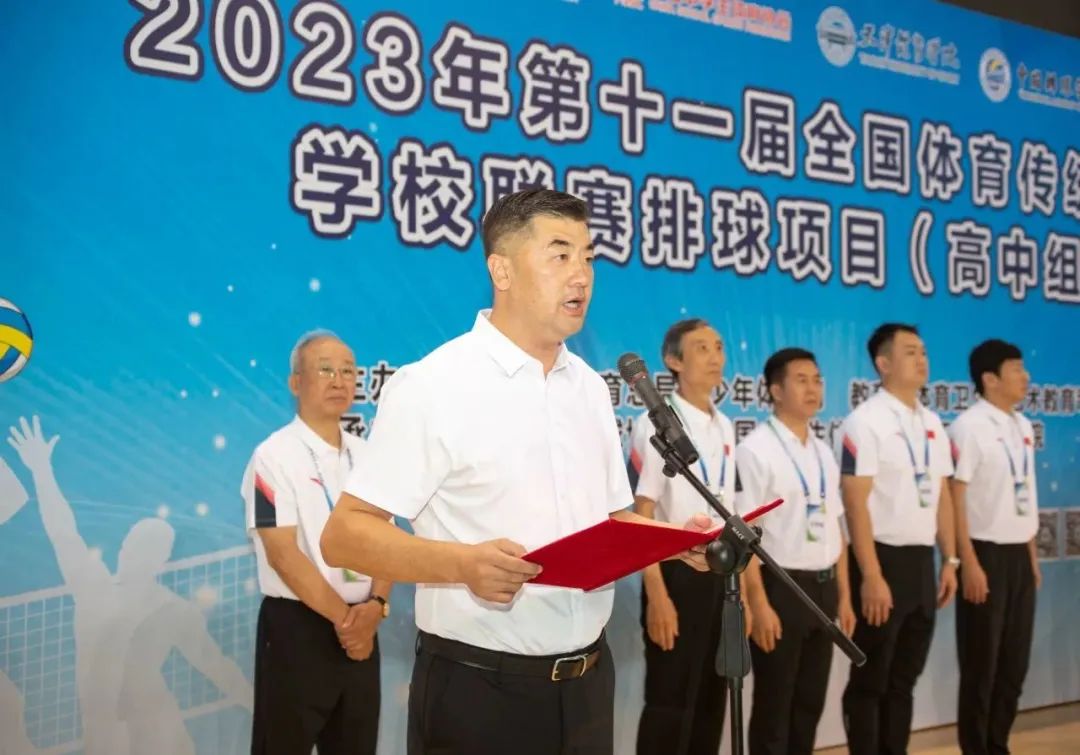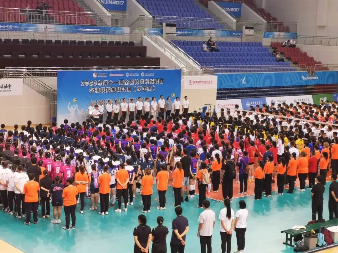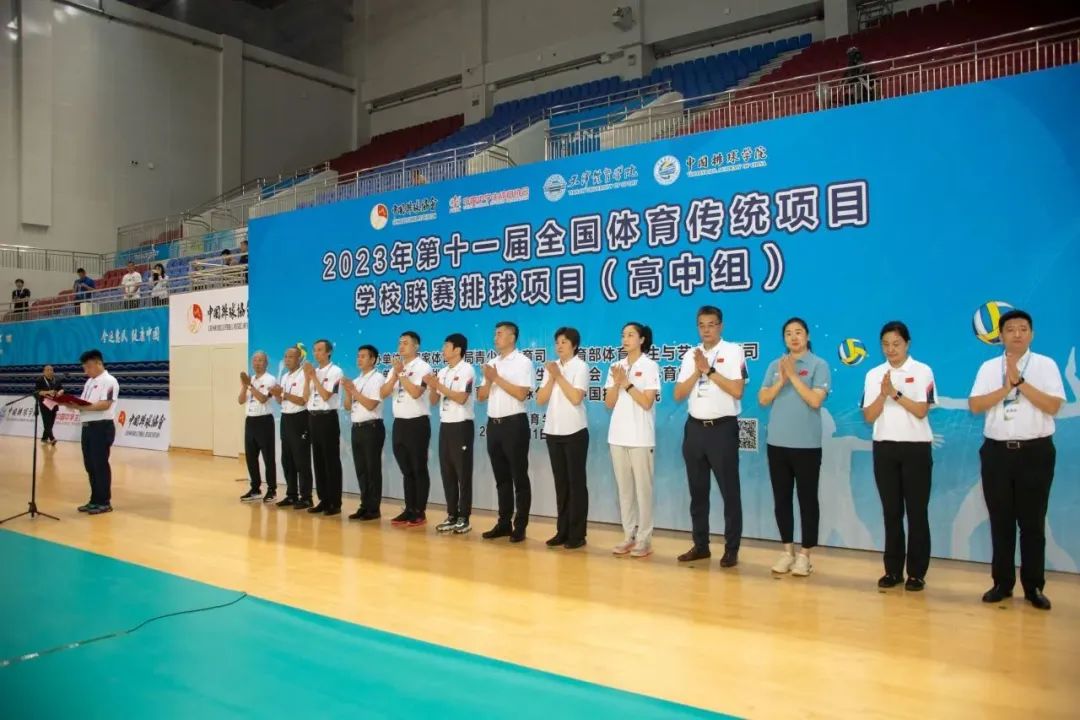 2023年8月3日,由国家体育总局青少司、教育部体卫艺司主办,中国排球协会、中国中学生体育协会、万象城allwincity官网承办的2023年第十一届全国体育传统项目学校联赛排球项目(高中组)比赛在万象城allwincity官网开幕。万象城allwincity官网党委常委、副院长杨智,国家体育总局排球运动管理中心训练及反兴奋剂部副主任应可、中国中学生体育协会排球分会秘书长刘洋等领导出席开幕式。开幕式由本届比赛管委会副主任、中国中学生体育协会排球分会副秘书长孙晓忠主持。来自17个省、自治区、直辖市的31支高中男子排球队和31支高中女子排球队参加了本次比赛。