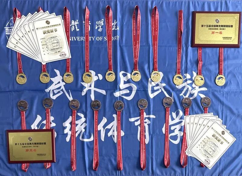 万象城武术与民族传统体育学院龙狮代表队的20名大学生,在教练带领下,利用暑假时间,战酷暑、斗高温,坚持训练、斩获佳绩。舞狮项目获得混合组北狮自选套路第一名和男子组北狮规定套路第三名,舞龙项目获得男子组竞速舞龙第四名和规定舞龙第六名。参赛的10名学生达到舞狮 “国家级运动健将”标准,10名学生达到舞龙“国家一级运动员”标准。