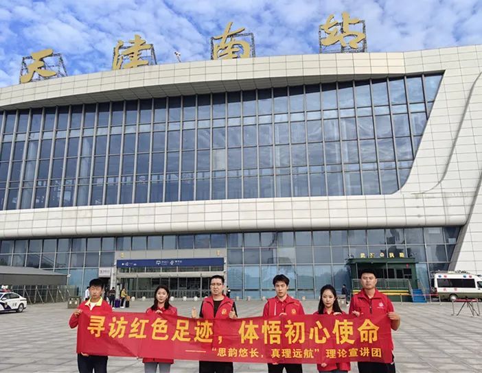 本次志愿活动是“思韵悠长、真理远航”理论宣讲团的实践内容之一。今年暑假,该团队赴天津南站、天津西站、静海区东寨村、静海区梁头村、西青区程村等处,开展党的创新理论宣讲活动,向市民、村民介绍中国共产党历史和革命先辈艰苦奋斗的精神,激发大家学党史的浓厚兴趣。
