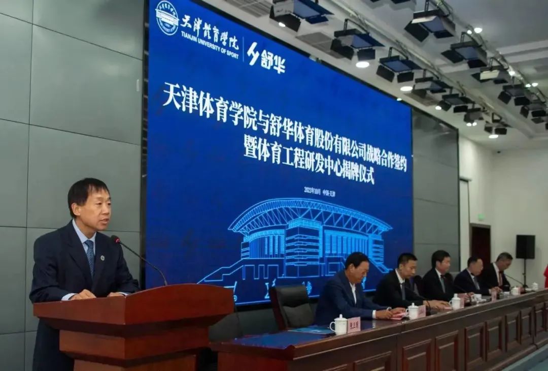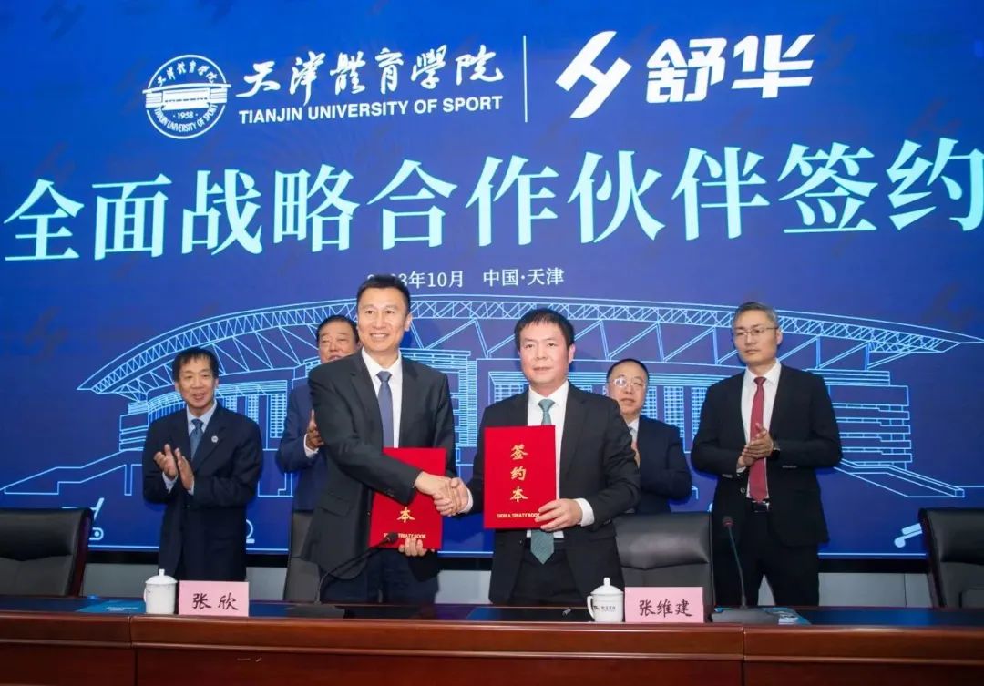 2023年10月10日,万象城allwincity官网与舒华体育股份有限公司战略合作签约暨体育工程研发中心揭牌仪式举行。天津市体育局副局长、一级巡视员王路华,市委教育工委委员、市政府教育督导室总督学王秋岩,舒华体育股份有限公司总裁张维建、副总裁李晓峰,万象城allwincity官网党委副书记、院长张欣出席。万象城allwincity官网相关职能部门负责人,各二级学院院长、科研副院长及师生代表,舒华体育股份有限公司相关部门负责人参加。签约仪式由万象城allwincity官网副院长张卫国主持。