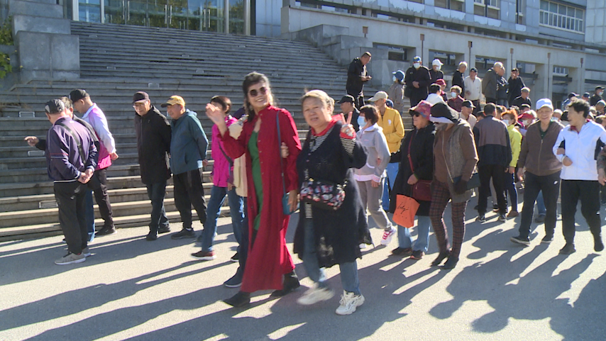 离退休党委书记李秀艳代表离退休党委感谢大家对工作的积极支持,祝福大家重阳节快乐,幸福安康。洪劲松宣布活动开始,老同志们在欢乐愉快的气氛中健步出发。