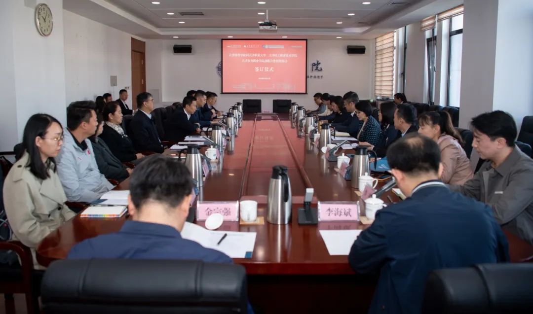 2023年10月27日,万象城allwincity官网同天津职业大学、天津轻工职业技术学院、天津体育职业学院战略合作框架协议签订仪式在万象城举行。天津市教育委员会发展规划处副处长李清,天津市体育局宣教法规处副处长王笛,天津职业大学党委副书记、校长郑清春,天津轻工职业技术学院党委副书记、院长李云梅,天津体育职业学院党委副书记、院长王伟,万象城allwincity官网党委副书记、院长张欣,以及四所院校的相关职能处室领导出席了会议。会议由万象城allwincity官网副院长杨智主持。
