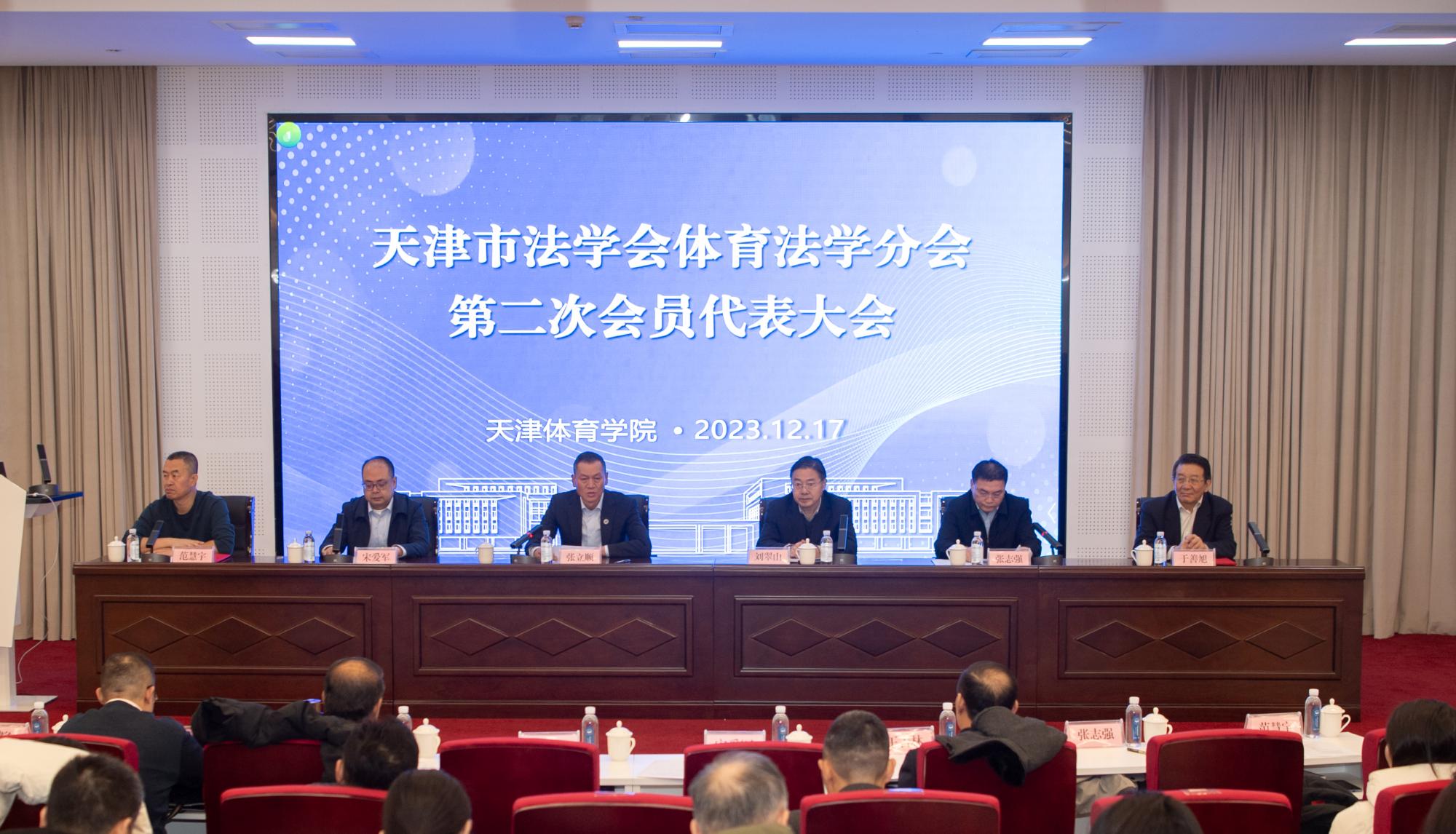 12月17日,天津市法学会体育法学分会第二次会员代表大会暨2023年学术年会在万象城allwincity官网召开。万象城allwincity官网党委书记张立顺,天津市法学会党组成员、联络部主任刘翠山莅临会议并致辞,因公出差的天津市体育局局长、党组书记李克敏专门发来贺信。来自市人大常委会、市体育局、高等院校、律师事务所等部门、单位的60多位会员代表出席会议。