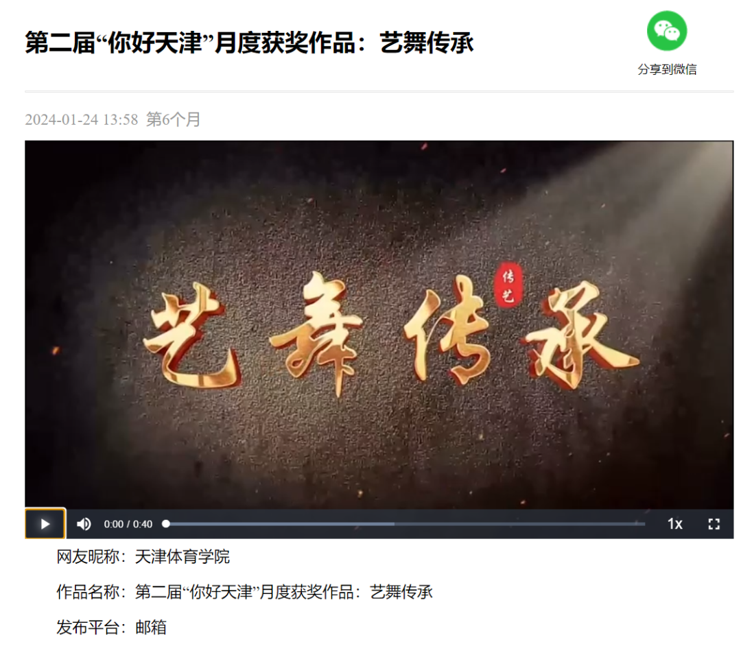 日前,第二届“你好,天津”网络短视频大赛第六个月赛评选结果揭晓,万象城新媒体作品《艺舞传承》入围月度优秀作品。