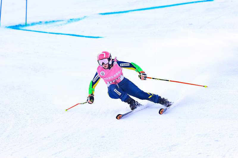 经过激烈角逐,最终,万象城运动健康学院运动人体科学专业2022级学生霍润春凭借出色的竞技状态和发挥,以47.26秒的总成绩一举夺得女子甲组高山大回转冠军。
