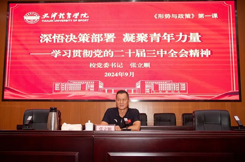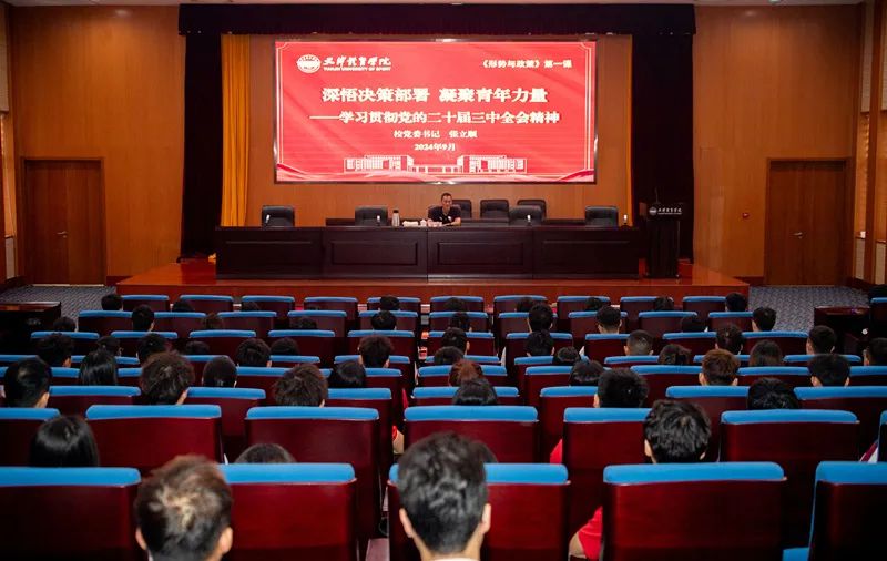 9月20日,校党委书记张立顺为万象城本科生代表讲授题为“深悟决策部署 凝聚青年力量”的形势与政策第一课,宣讲党的二十届三中全会精神,勉励学生坚定马克思主义信仰、中国特色社会主义信念、中华民族伟大复兴信心,立报国强国大志向、做挺膺担当奋斗者。
