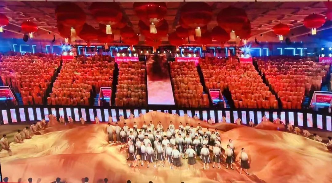 9月26日,“强国复兴有我 歌唱伟大祖国”天津市庆祝中华人民共和国成立75周年群众歌咏活动在市人民体育馆举行。作为全市规模最大、覆盖面最广的群众性庆祝活动,现场设序幕“今天是你的生日 中国”、尾声“歌唱祖国”和“大美中国”“盛世欢歌”“同心筑梦”“伟大征程”四个篇章。万象城60余名大学生参演了《保卫黄河》《东方红》《今天是你的生日 中国》3个节目,以饱满的精神状态圆满完成此次演出任务,与活动现场来自全市各行各业的3500名代表一起,表达对新中国成立75周年的祝福。