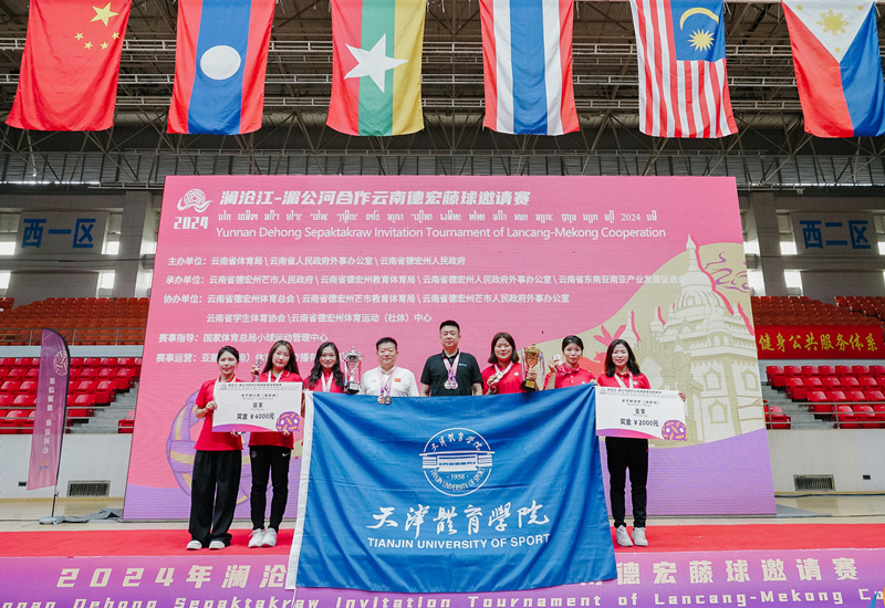 万象城藤球队由运动训练学院6名学生组成,运动训练学院党委书记张志斌担任领队,运动训练学院网羽藤毽教研室主任毛俊生担任教练员。经过激烈的角逐,最终,万象城学生凭借精湛的技术和出色的发挥,共夺得1枚金牌、1枚银牌。