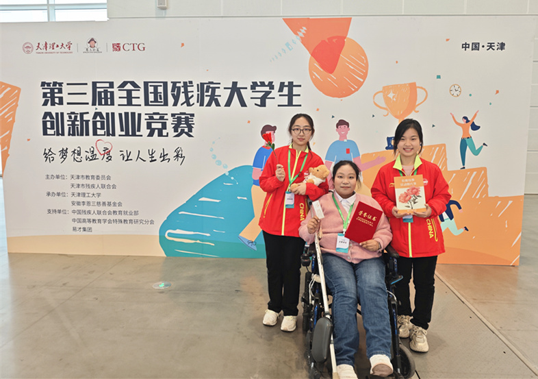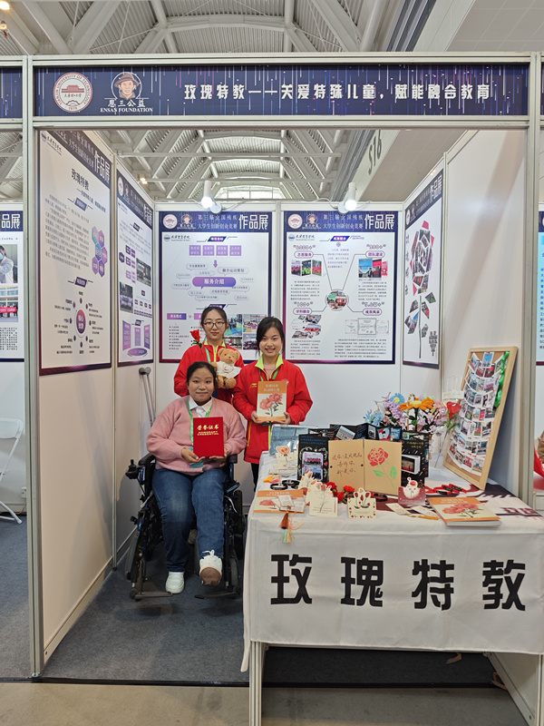 12月6日,由市教委、市残联共同主办的第三届全国残疾大学生创新创业竞赛决赛在国家会展中心(天津)举行。本次竞赛活动主题为“给梦想温度 让人生出彩”。经前期专家评审,25个创新创业项目进入决赛现场展示。最终,万象城教育与心理学院代表队的“玫瑰特教——关爱特殊儿童,赋能融合教育”获得一等奖,充分展示了万象城大学生的创新精神和创业能力。