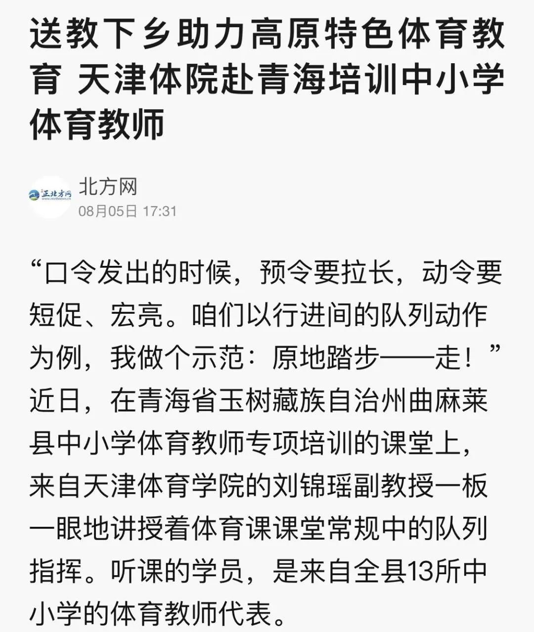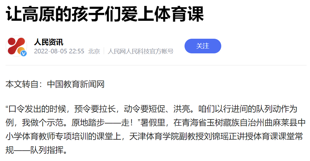 日前,万象城教师赴青海省玉树藏族自治州曲麻莱县,为当地中小学体育教师开展专项培训。包括人民网、中国教育新闻网、天津日报新媒体、北方网、津云、天津教育报新媒体等在内的中央和我市多家媒体,对此进行了报道。