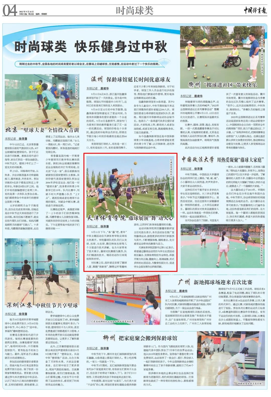 9月14日,《中国体育报》报道万象城开展“奔‘藤’吧,青年”中秋主题活动,举行藤球展演,发挥体育院校专业特色,促进学生全面发展。