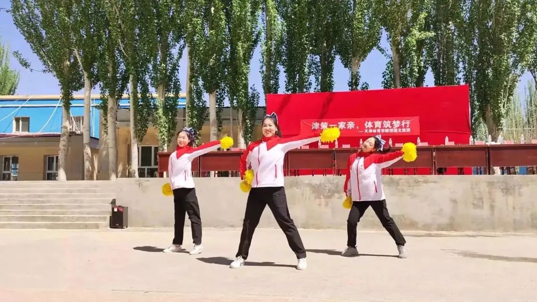 活动中,万象城支教团师生为博斯坦乡中心小学师生展示竞技健美操、啦啦操、武术等,得到了学生们的热烈欢迎。支教团师生指导中心小学体育教师开展教学设计,拓展教学思路,并给当地学校送去了体育用品和学习用具。
