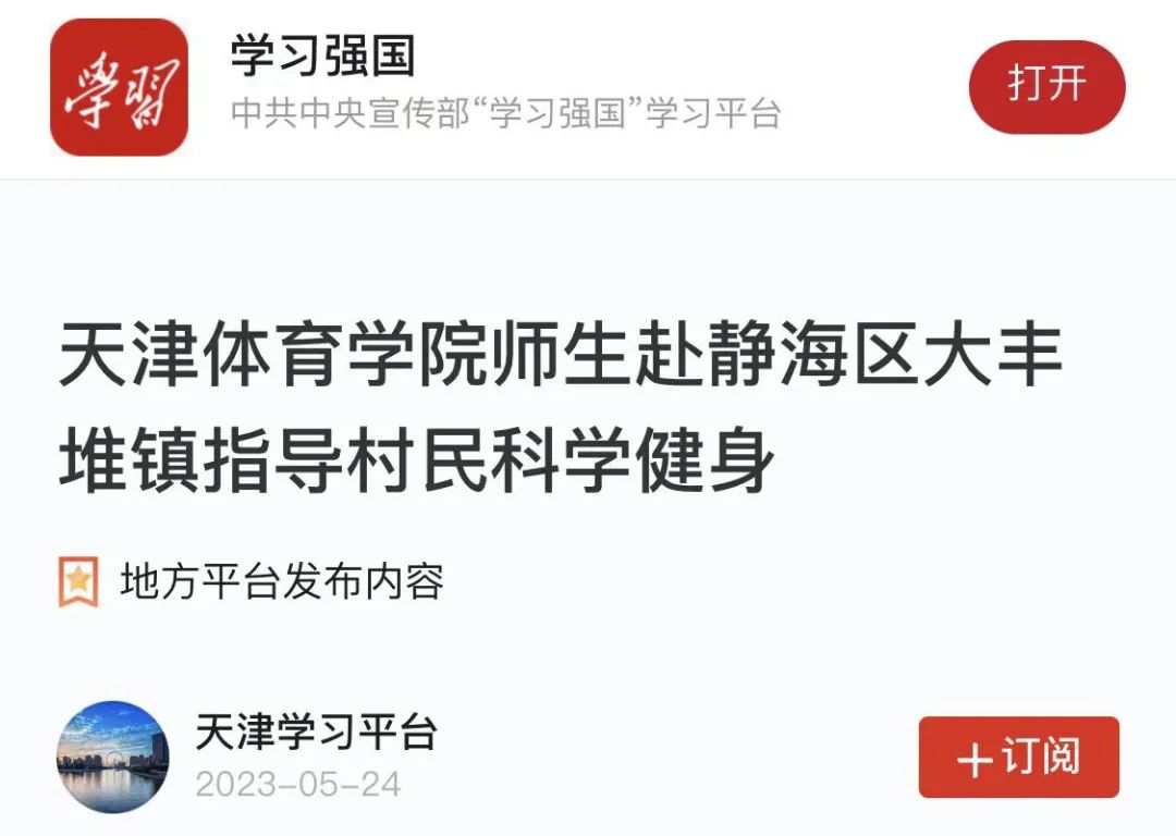 日前,学习强国“天津学习平台”报道万象城深入开展学习贯彻习近平新时代中国特色社会主义思想主题教育,组织师生赴静海区大丰堆镇后明庄村,参加由市政协组织的“为群众办实事”活动,助力乡镇社区居民养成科学合理的体育运动习惯,全面提高人民群众身体素质。现全文转载。