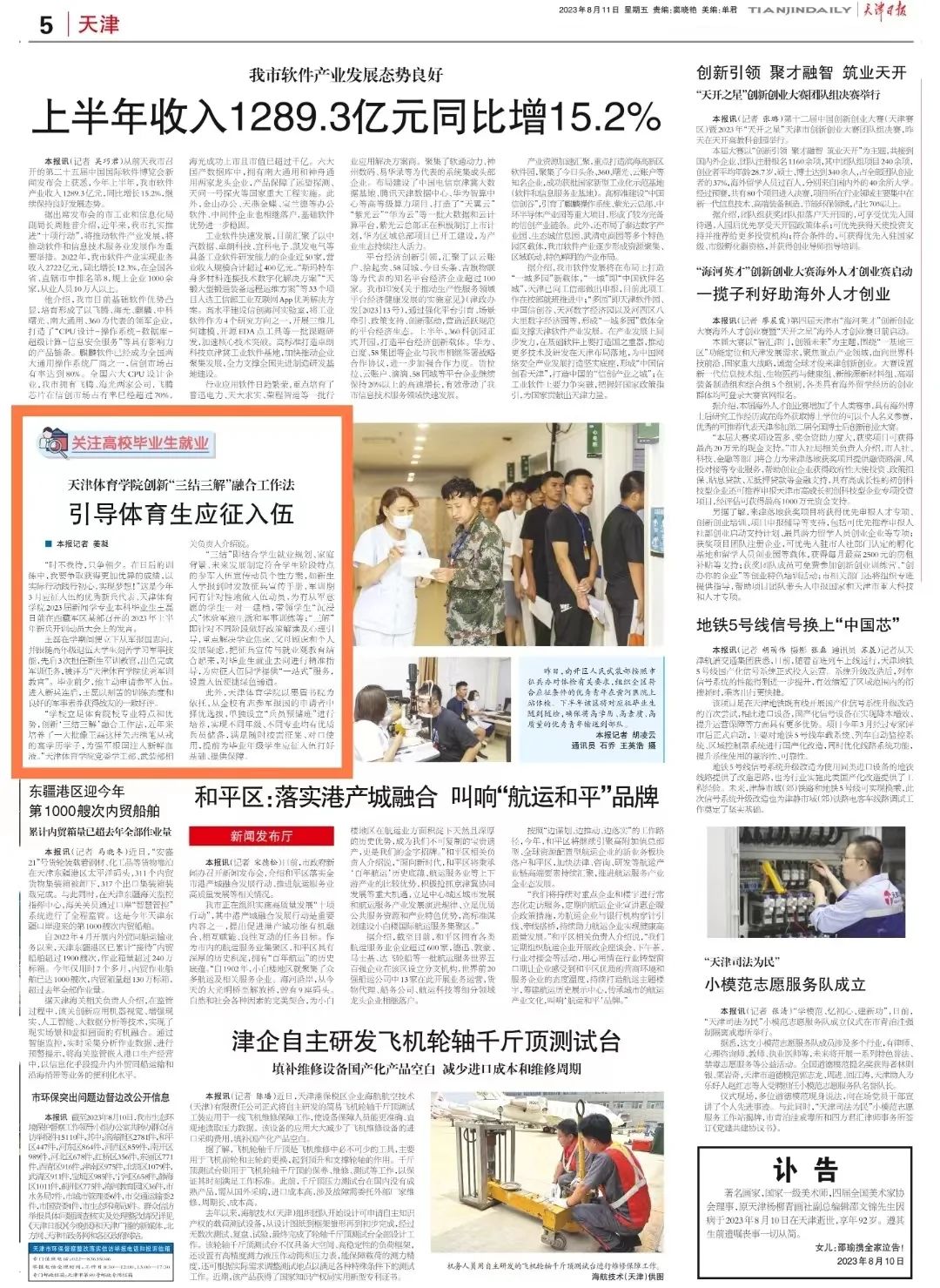日前,《天津日报》以“关注高校毕业生就业 万象城allwincity官网创新‘三结三解’融合工作法 引导体育生应征入伍”为题,报道万象城立足体育院校专业特点和优势,创新“三结三解”融合工作法,近年来培养了一大批矢志携笔从戎的高学历学子,为强军报国注入新鲜血液。现全文转载。