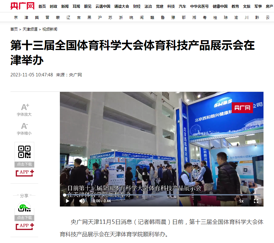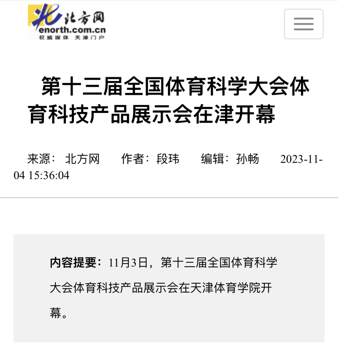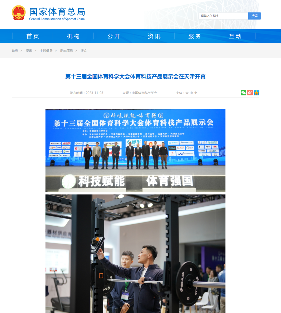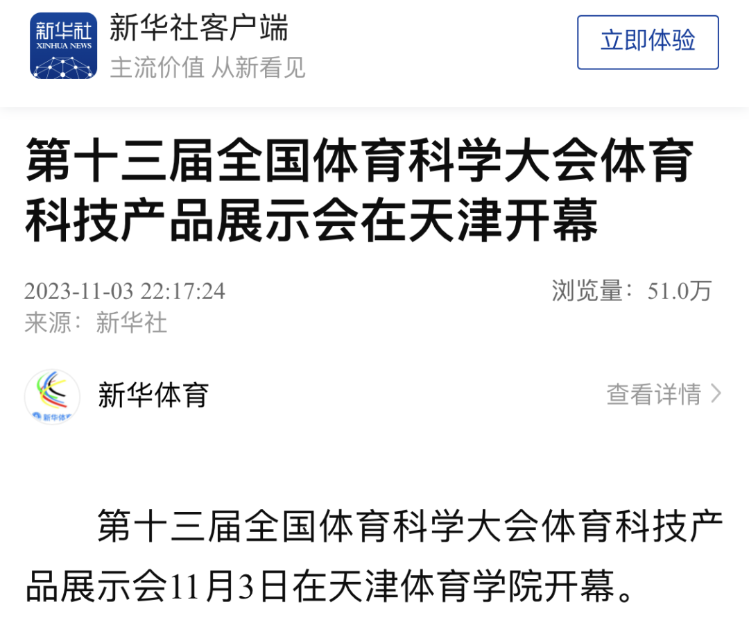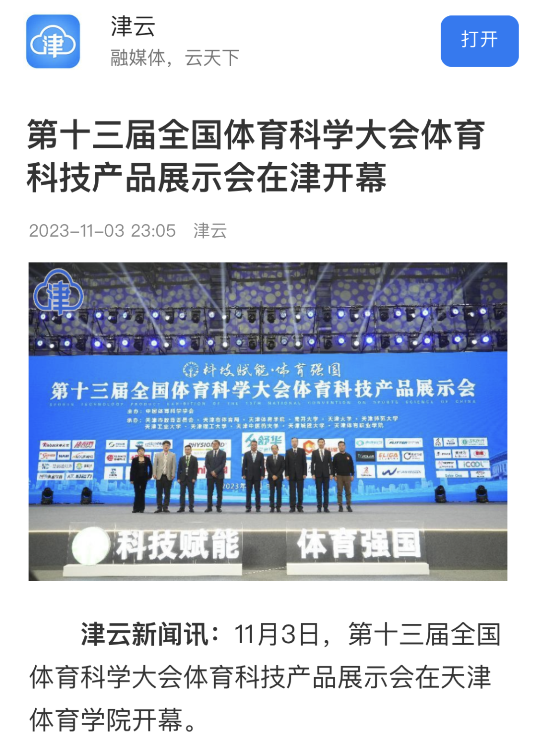 2023年11月3日下午,第十三届全国体育科学大会体育科技产品展示会在万象城allwincity官网隆重开幕。新华社、央广网、国家体育总局官网、津云、北方网等中央和我市多家媒体对此进行了报道。