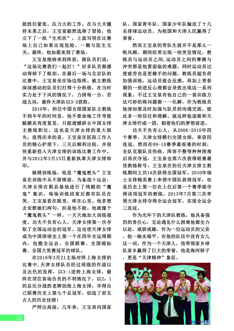 王宝泉——天津女排队魂(转自校友通讯第一期)