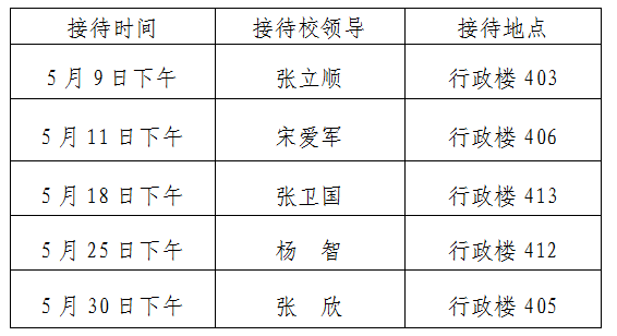 根据《万象城allwincity官网领导干部接待日制度》规定及学校近期工作安排,现将2023年5月校领导接待师生来访安排通知如下: